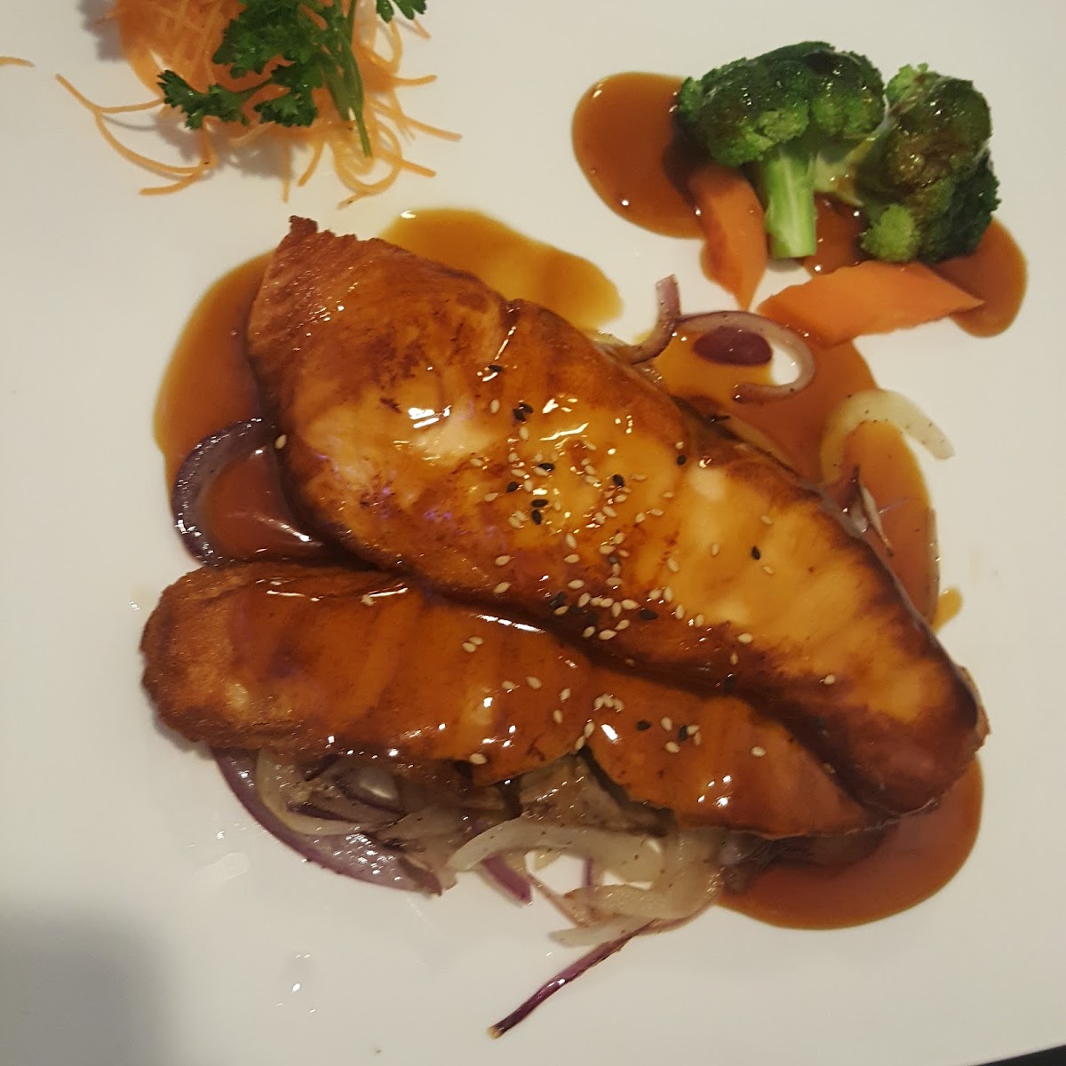 Not everything here revolves around sushi either. The Teriyaki Salmon is a comforting alternative, especially for guests who want something warm and satisfying. The salmon arrives glazed with a flavorful teriyaki sauce, creating a balanced combination of savory and slightly sweet notes. It’s a reliable choice and pairs nicely with other dishes if you’re sharing the table.