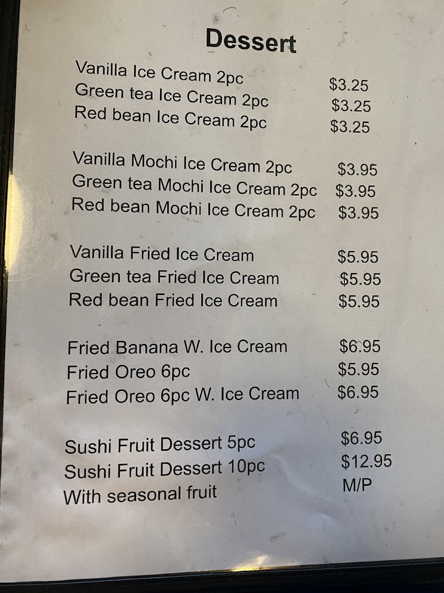 Tuna, salmon, yellowtail and tobiko. Consuming raw or undercooked meats, poultry, seafood, shellfish or egg may Increase your Risk of foodborne illness.